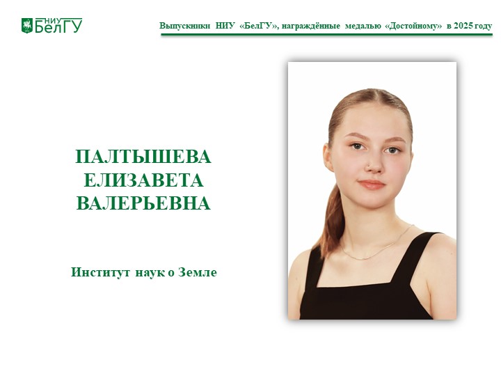Палтышева Елизавета Валерьевна, выпускница института наук о Земле