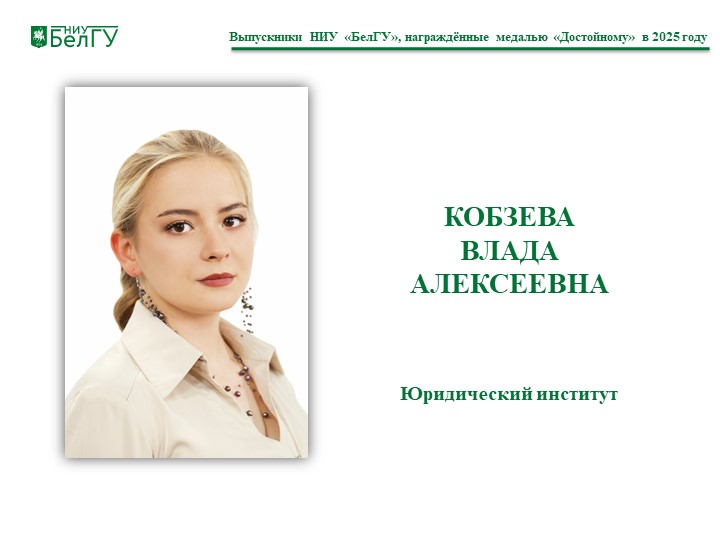 Кобзева Влада Алексеевна, выпускница юридического института.
