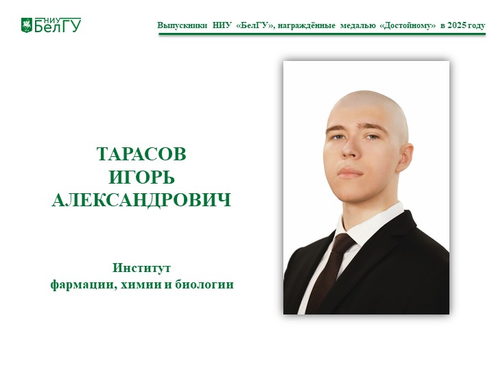 Тарасов Игорь Александрович, выпускник института фармации, химии и биологии.