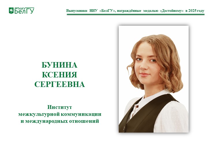 Бунина Ксения Сергеевна, выпускница института межкультурной коммуникации и международных отношений.