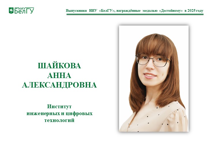 Шайкова Анна Александровна, выпускница института инженерных и цифровых технологий
