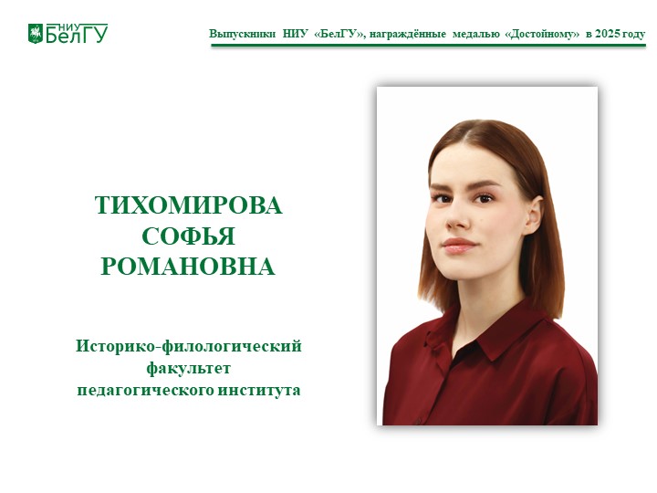 Тихомирова Софья Романовна, выпускница историко филологического факультета педагогического института.