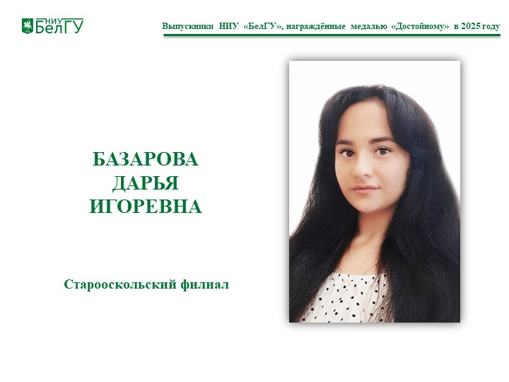 Базарова Дарья Игоревна, выпускница Старооскольского филиала НИУ «БелГУ»