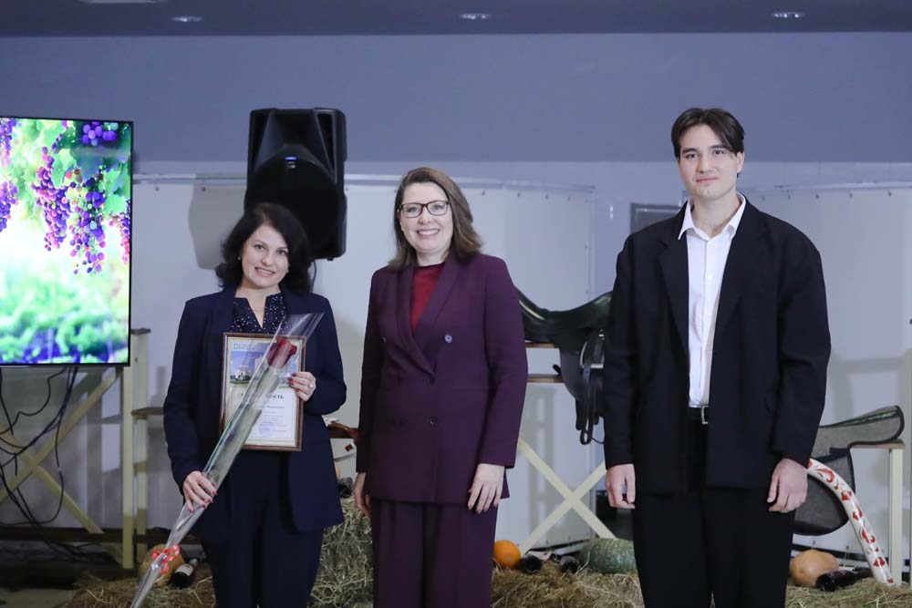 Продолжилось мероприятие приятным моментом – за большой личный вклад в успешную реализацию проекта по интродукции сортов технического винограда в Центрально-Чернозёмном районе России благодарность НИУ «БелГУ» из рук ректора получили заведующий экспериментально-биологической клиникой НИИ Фармакологии живых систем НИУ «БелГУ» Аркадий Нестеров, заведующая лабораторией биотехнологии растений НОЦ «Ботанический сад НИУ «БелГУ» Людмила Тохтарь, начальник управления ландшафтной архитектуры Марина Евтухова, главный технолог лаборатории клеточных технологий и геномного редактирования растений НИИ Фармакологии живых систем Наталия Стоянова, старший научный сотрудник Научно-исследовательского центра геномной селекции Антон Сычёв, младший научный сотрудник лаборатории доклинических исследований НИИ Фармакологии живых систем Пётр Лебедев, инженер лаборатории клеточных технологий и геномного редактирования растений НИИ Фармакологии живых систем Вера Языкова, лаборант-исследователь Лаборатории генетических технологий и генного редактирования для биомедицины и ветеринарии Алина Апостол, химик-эксперт лаборатории токсикологических исследований НИИ Фармакологии живых систем Игорь Ефременко, специалист отдела благоустройства управления ландшафтной архитектуры Станислав Апостол и мастер зелёного хозяйства Сергей Лев. Также заслуженные награды Евгения Анатольевна вручила доцентам кафедры фармакологии и клинической фармакологии медицинского института Татьяне Автиной и Юлии Степенко.