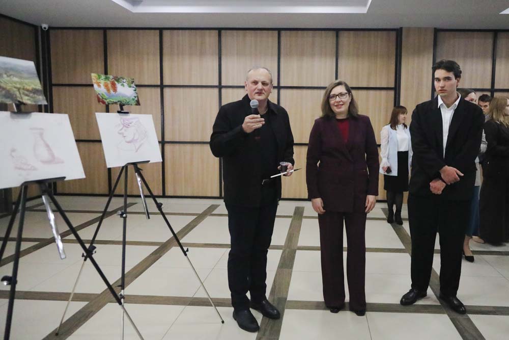 В честь творческого со-вернисажа для гостей праздничного мероприятия работала персональная выставка члена Союза художников России, старшего преподавателя кафедры теории, педагогики и методики начального образования и изобразительного искусства НИУ «БелГУ» Валерия Кузьминова.