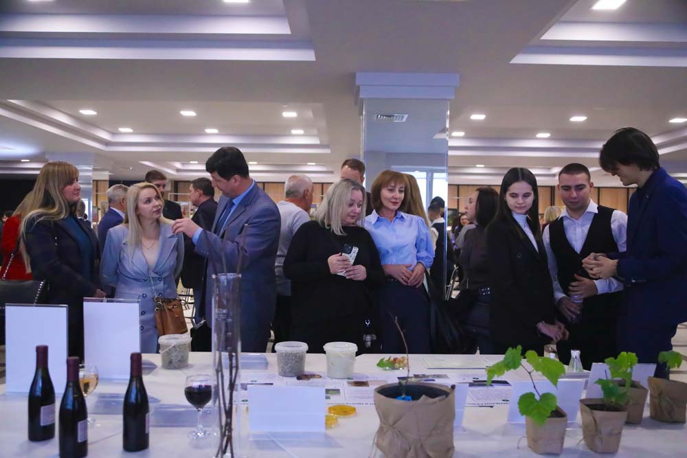 Как отметил Михаил Покровский, сорт винограда является важной, но не единственной составляющей технологии виноделия. Для него также важна совокупность природных и других факторов (почва, климат, рельеф, биомир) – терруар произрастания лозы, ключевой компонентой которого являются дрожжевые грибки. В чашках Петри на стенде были представлены чистые культуры дрожжей, выделенные в терруаре Ботанического сада под руководством директора Регионального микробиологического центра НИУ «БелГУ» Инны Соляниковой. Как отметил Михаил Владимирович, эта культура также обладает потенциалом для внедрения в промышленное производство.
